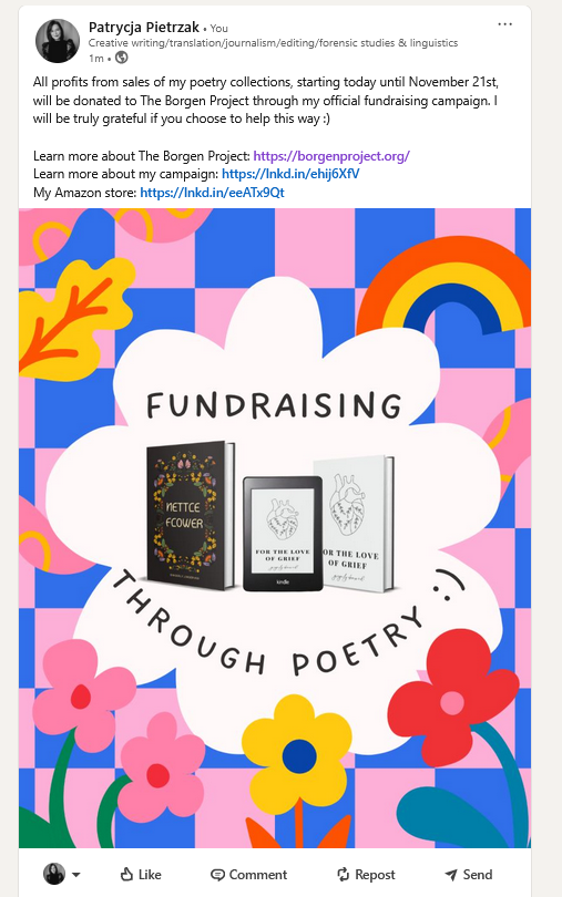 Content Team member Patrycja Pietrzak, used her poetry skills for her fundraising